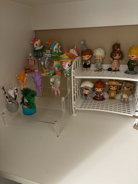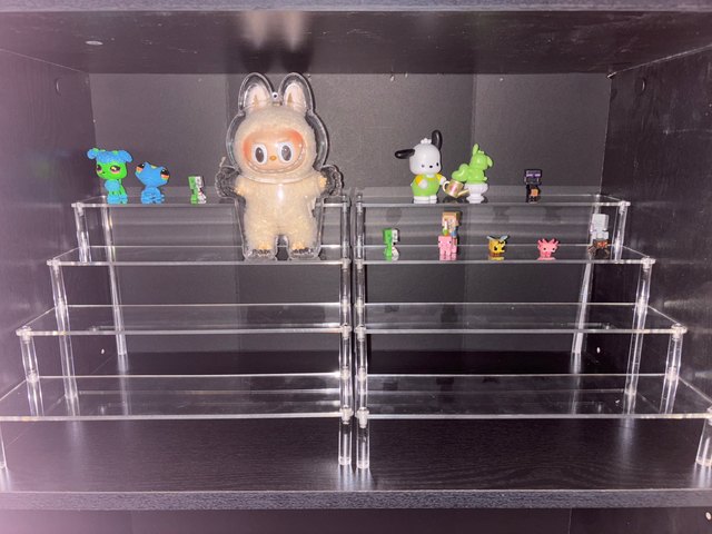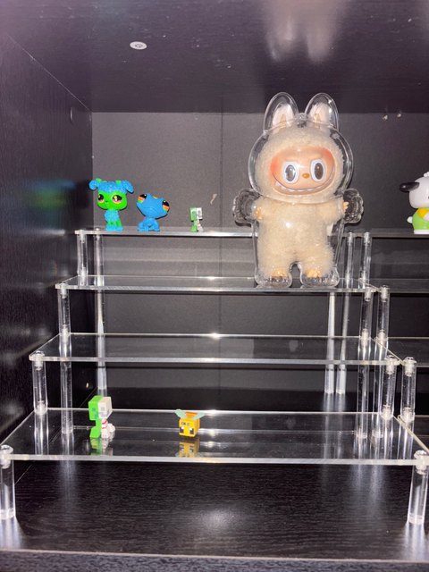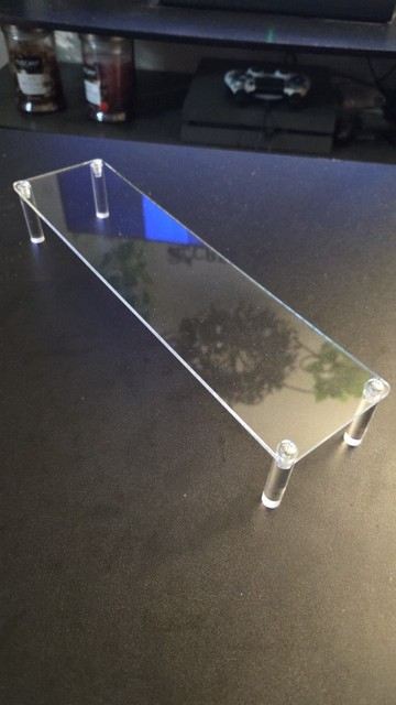 This is a review for the 1 tier 20cm x 8 cm variant. The photos I provided show this acrylic stand in a display case – with and without anything on top. I like the length of this stand, for two small plush dolls can fit comfortably on top of it. The protective film was quite easy to remove for this acrylic stand, too. Thank you very much!
