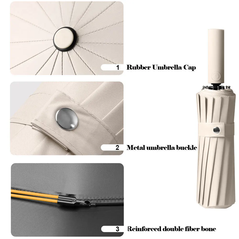 The umbrella is truly large, sturdy, and reliable. It has a double-rib (16K) frame construction, which helps it withstand strong winds well. The automatic open-close function works smoothly
