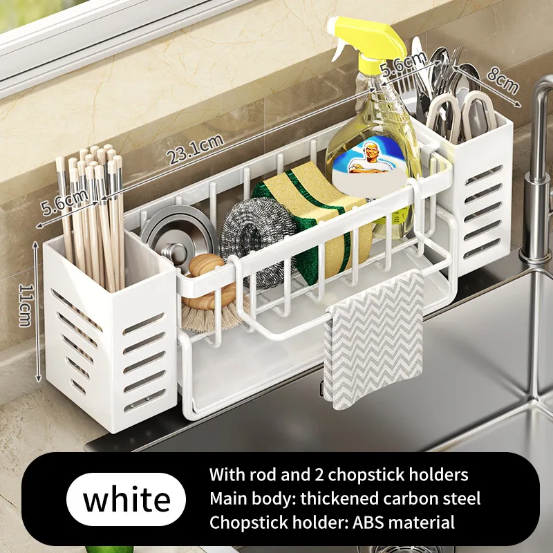 Estante de almacenamiento para fregadero de cocina de acero inoxidable, ahorro de espacio, estante de esponja incorporado y cesta de drenaje para limpieza y almacenamiento de cocina (v1.12.4)