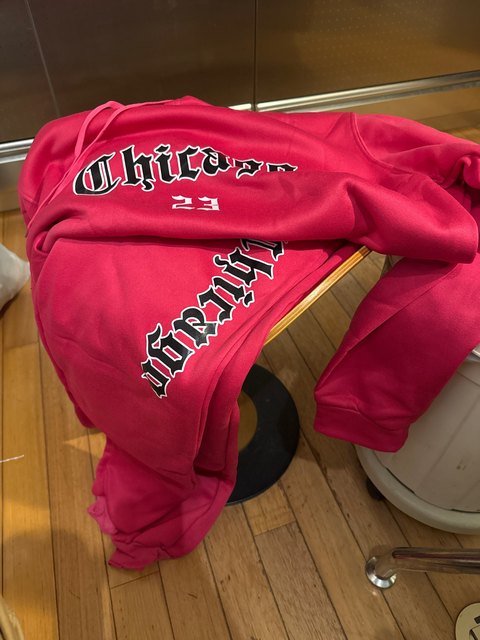 10 valoraciones en Conjunto Deportivo de Mujer de 2 Piezas: Sudadera con Capucha y Pantalón, Estampado Gráfico Chicago, Rosa, Talla Grande