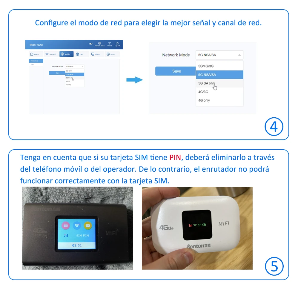 ●Si su tarjeta SIM tiene código PIN/bloqueo, debe desactivar (eliminar) código PIN/bloqueo en su teléfono o a través del operador de comunicación.Puede ayudar al enrutador a tener acceso para reconocer su tarjeta SIM y conectarse a la red.De lo contrario, el enrutador no muestra SIM y su WiFi se podrá conectar pero no hay red.