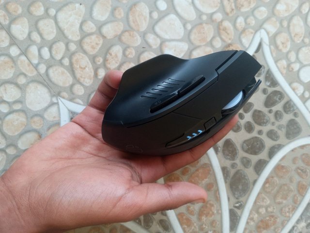 It’s a good mouse, not small and reasonably heavy. The only drawback is the plastic where the thumb and pointer finger go is kind of slippery. It would be nice if it was like the top plastic or was ridged. Minor complaint, I’ll put some tape on it.