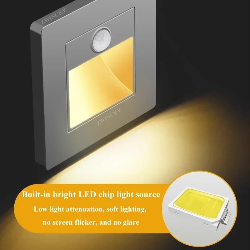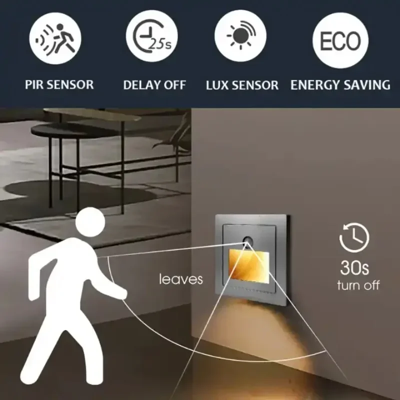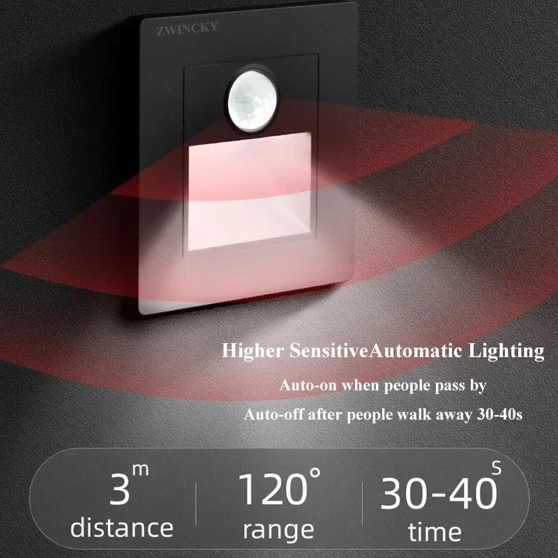 Luz LED de Escalera Empotrable con Sensor de Movimiento PIR – Infrarroja, Inducción Corporal para Peldaños, Pasillos, Dormitorio