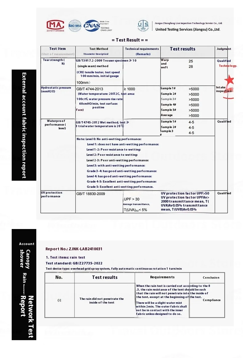 Índice de impermeabilidad de las tiendas de campaña para exteriores