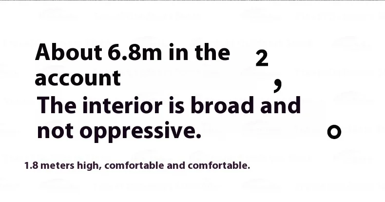 Lista de tiendas de campaña: 1 bolsa de almacenamiento, varilla de marco lateral 6,1 cuenta interna, varilla de fibra de vidrio superior 3,1 cuenta externa, cuerda de viento, un total de 10,1,6 m de poste de pasillo 2, un total de 20 clavos luminosos