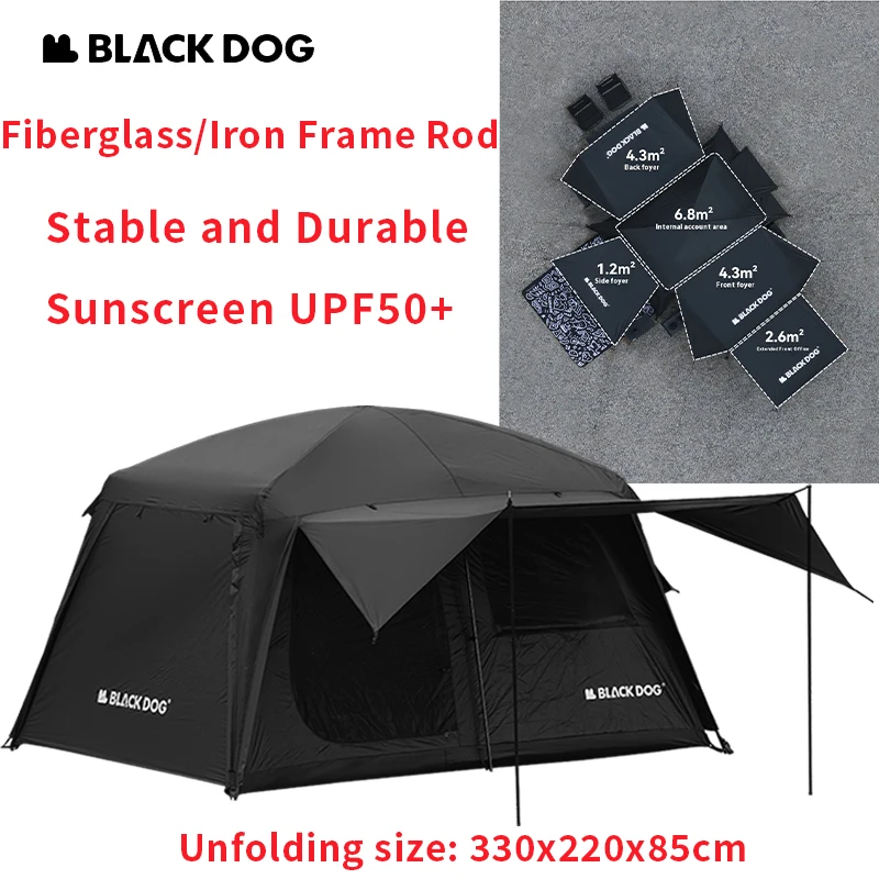 Naturehike BLACKDOG Shanting 6.8 Tienda de Campaña Instalación Rápida, Robusta, Postes Fibra Titanio 150D