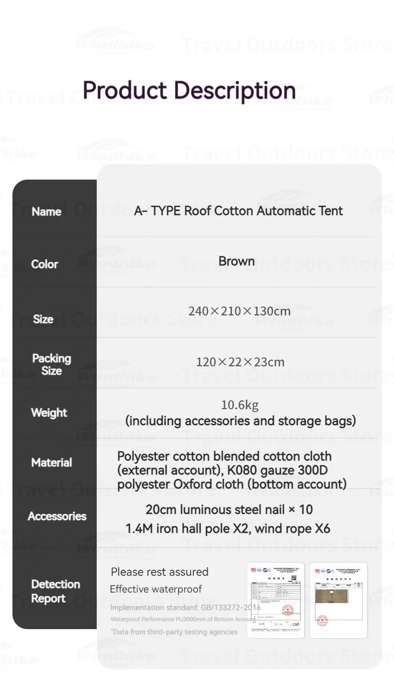 Material exterior de la tienda: Tela sin algodón mezclada de poliéster y algodón /Gasa K080