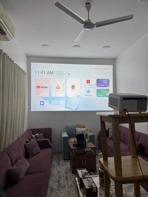Проэктор шумнее чем я предполагал, встроенный андроид ужасный, им невозможно пользоваться, к проэктору обязательно надо покупать TV приставку в остальном за свои деньги хороший проэктор.