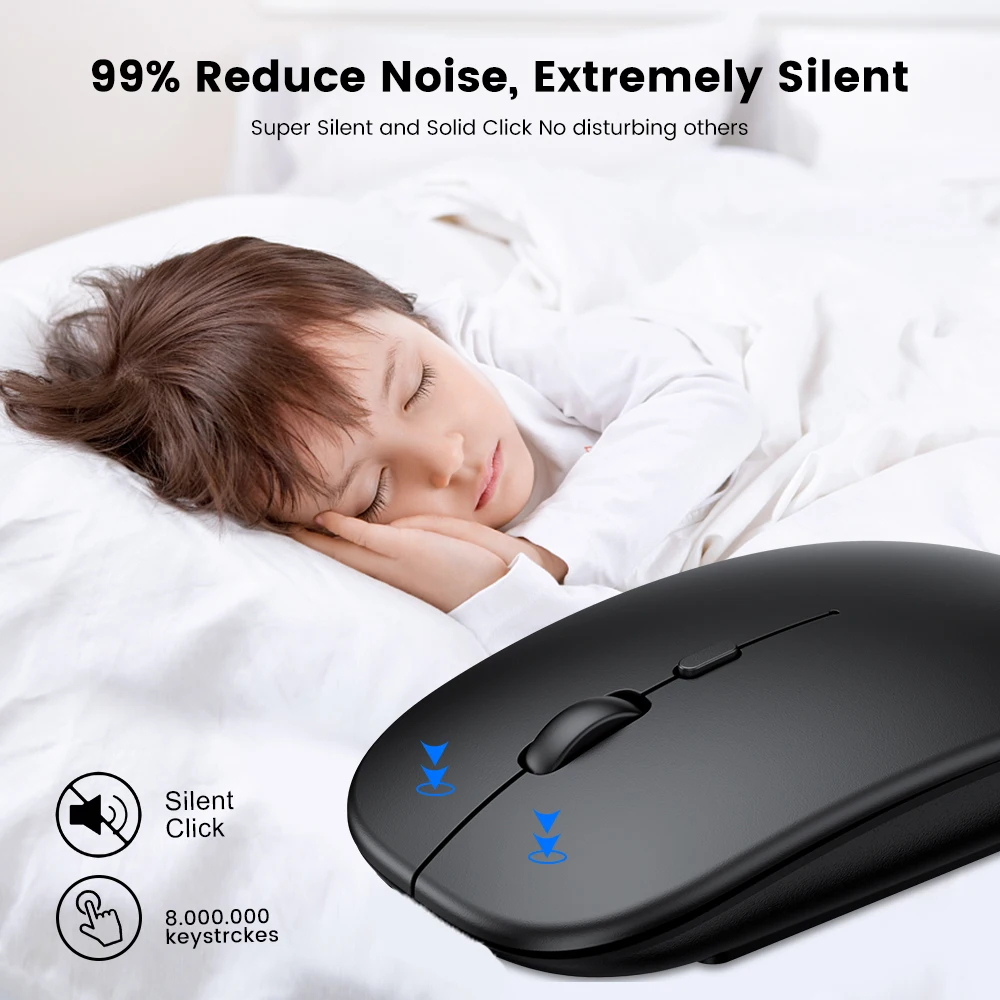 Plug and Play: No es necesario instalar ningún controlador, simplemente conecte el receptor USB a su computadora portátil y el mouse podrá comenzar a usarlo.La tecnología inalámbrica de 2,4 GHz proporciona una conectividad potente y confiable, con un alcance efectivo de hasta 10 metros.