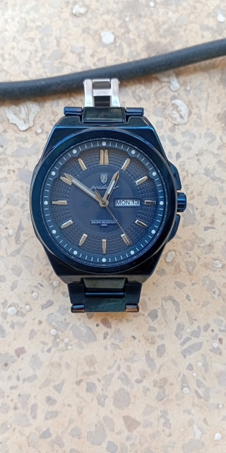 El reloj esmuy bonito, pero mucho más grande de lo que esperaba. El color azul es de un tono que combina muy bien con casi cualquiercolor. Aunque es un modelo sport, se puede usar como de vestir. Lo recomiendo.