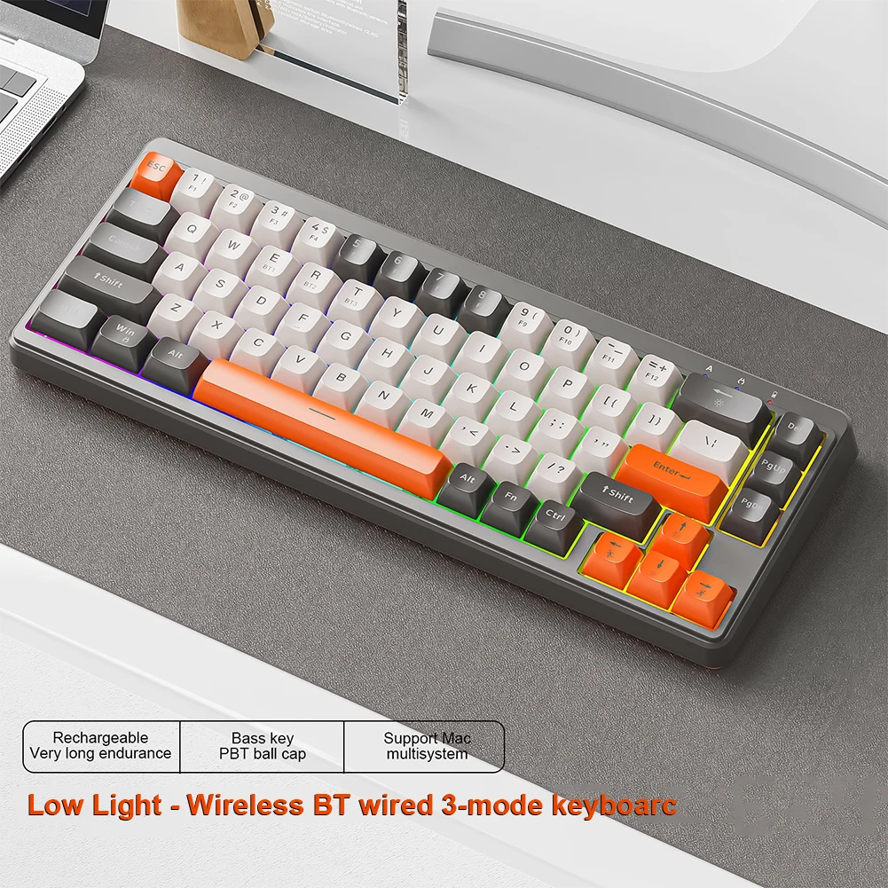 Teclado mecánico inalámbrico Tri-Modo BT5.0/2.4GHz/USB-C Mini teclado de oficina Teclado inalámbrico retroiluminado RGB para juegos para PC portátil