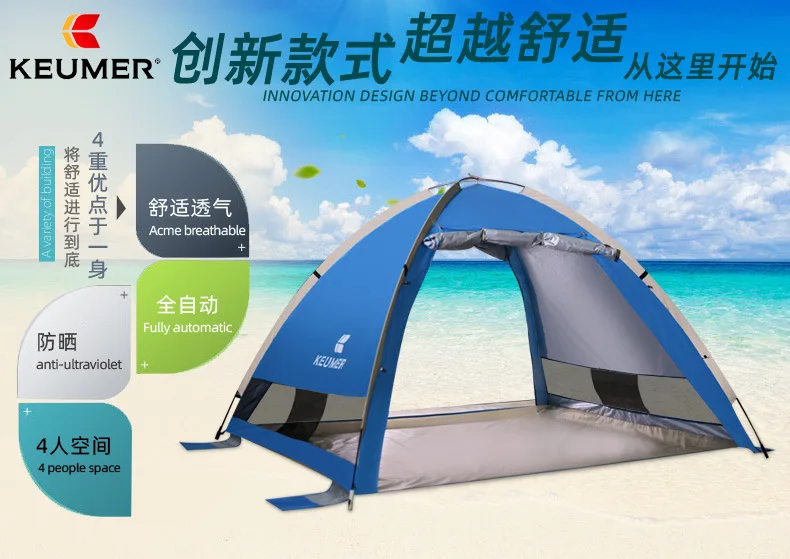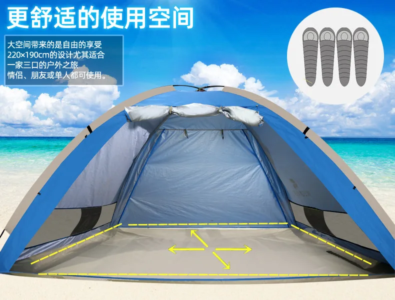 Tienda de campaña para 3-4 personas, refugio de campamento al aire libre, tienda abierta automática, sombrilla Anti UV, senderismo, pesca, toldo, Picnic, almohadilla de playa