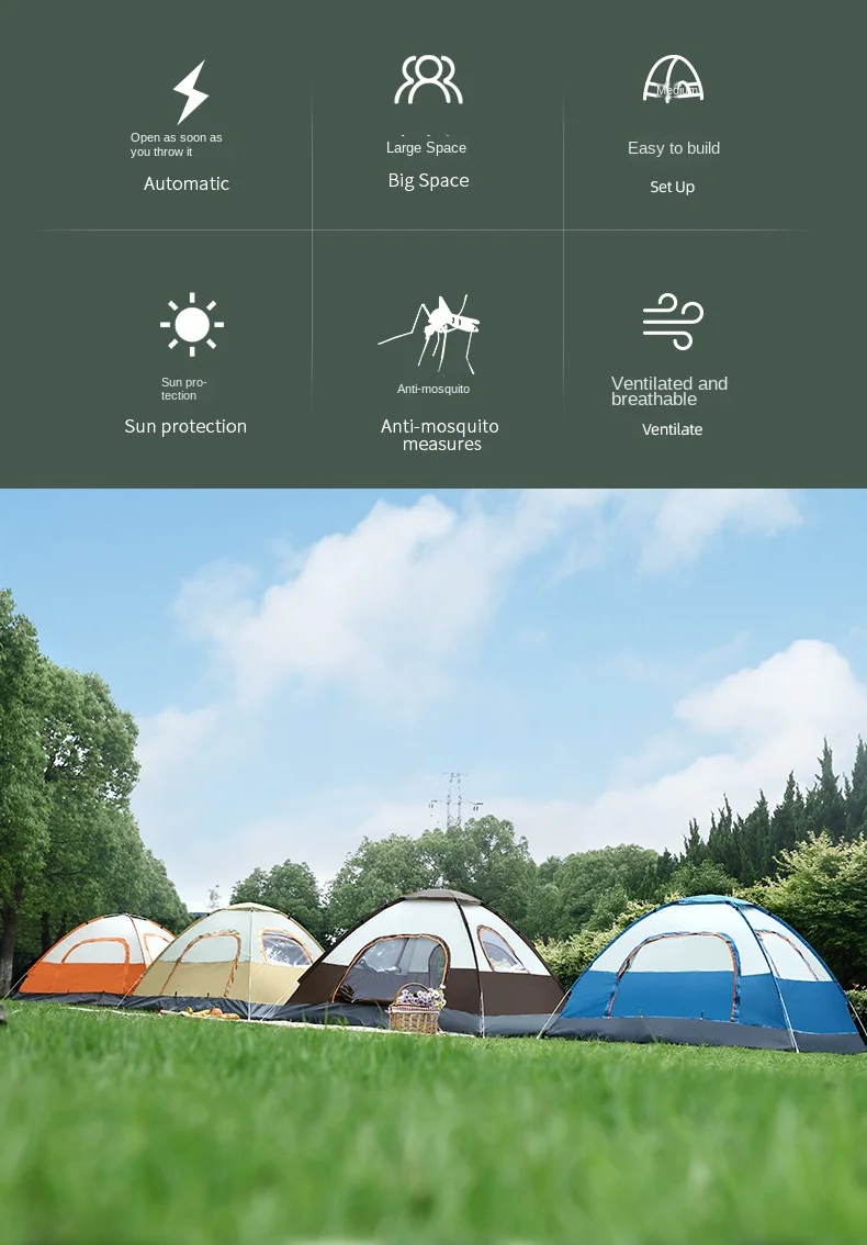 Tienda de campaña automática 1-4 personas, impermeable, resistente al viento para camping, playa y senderismo.