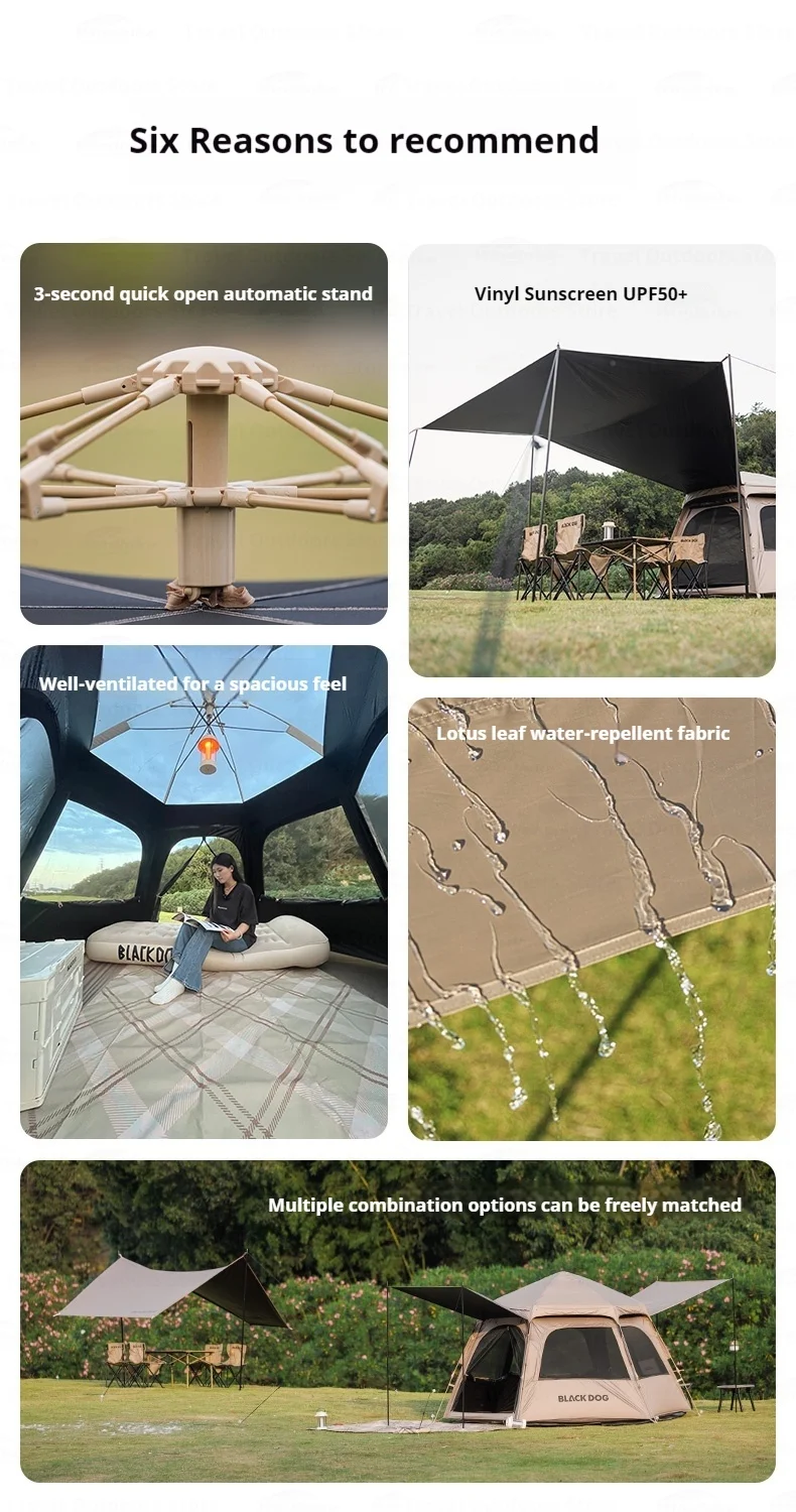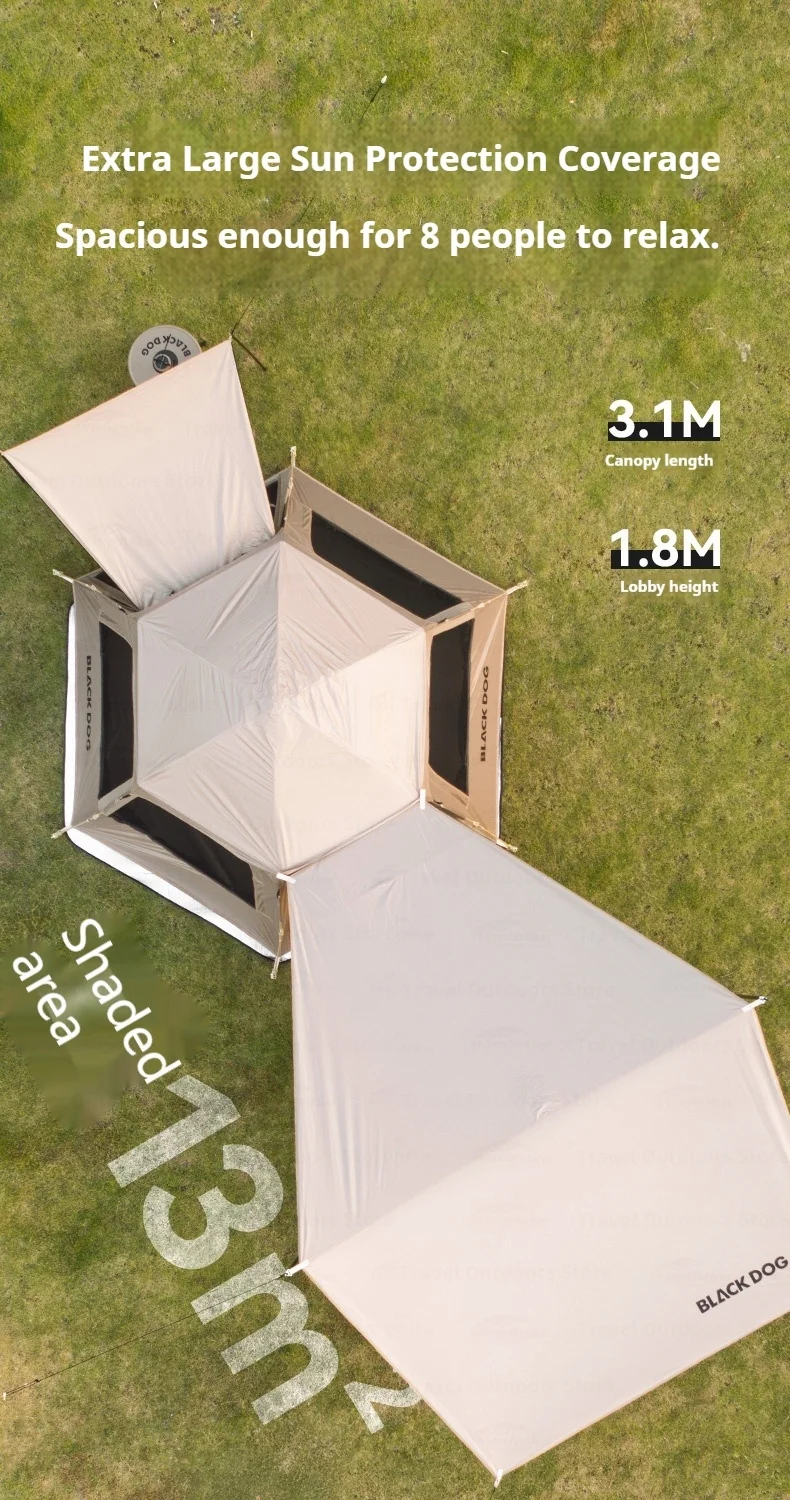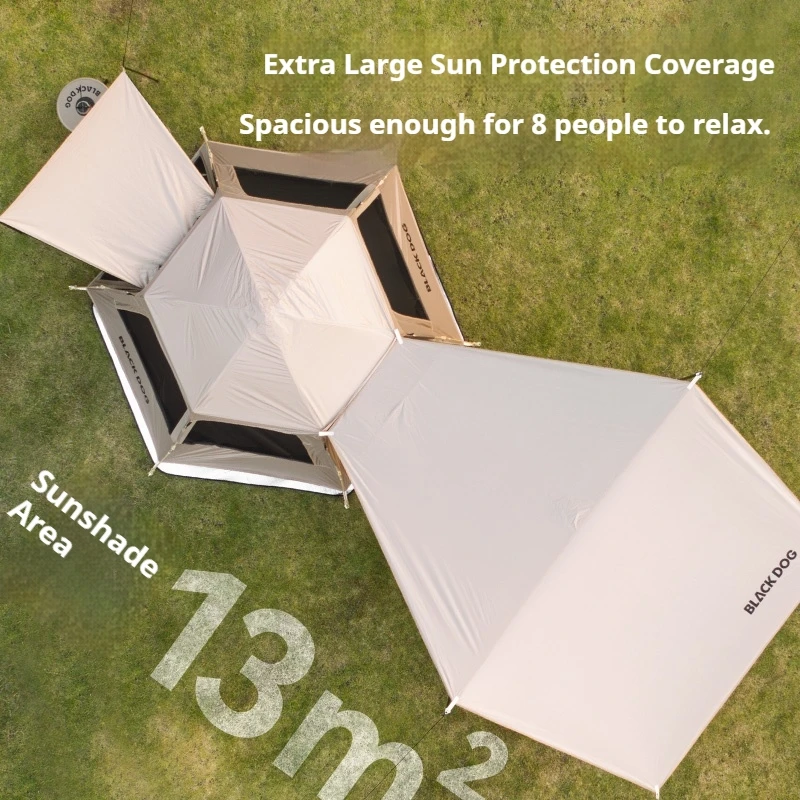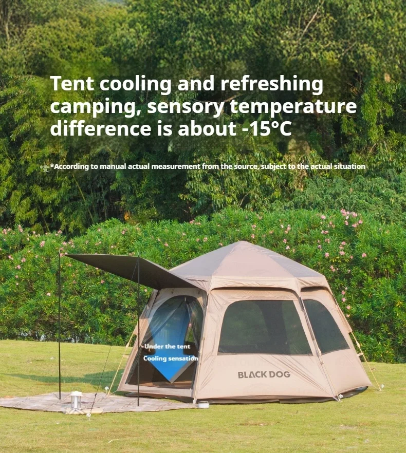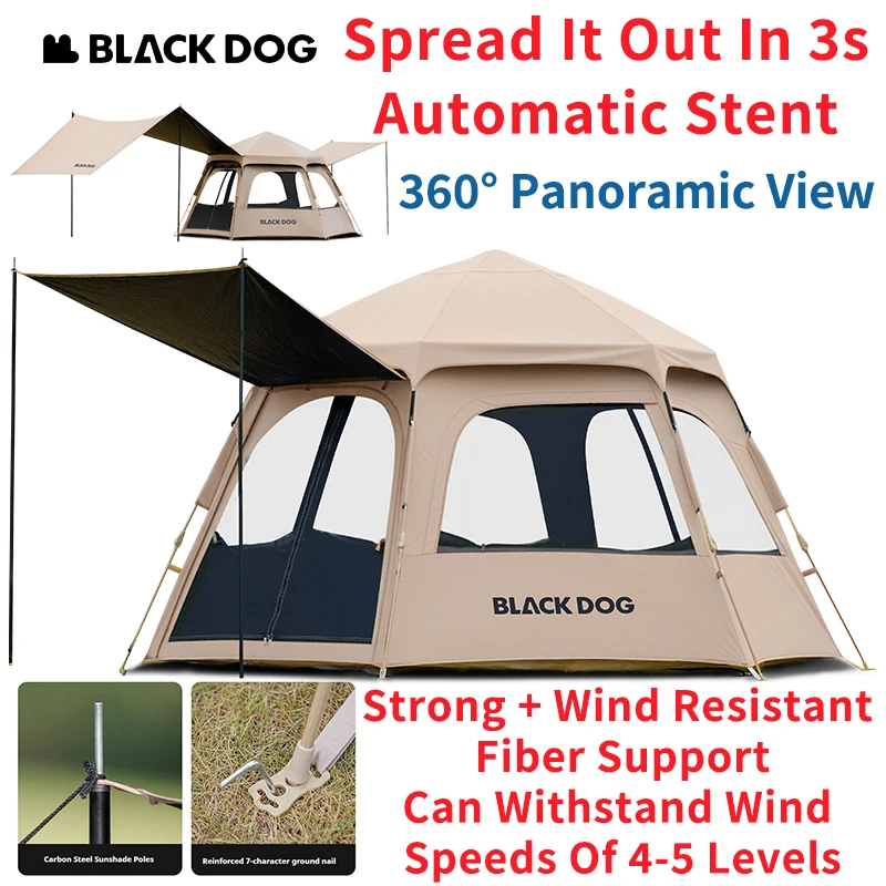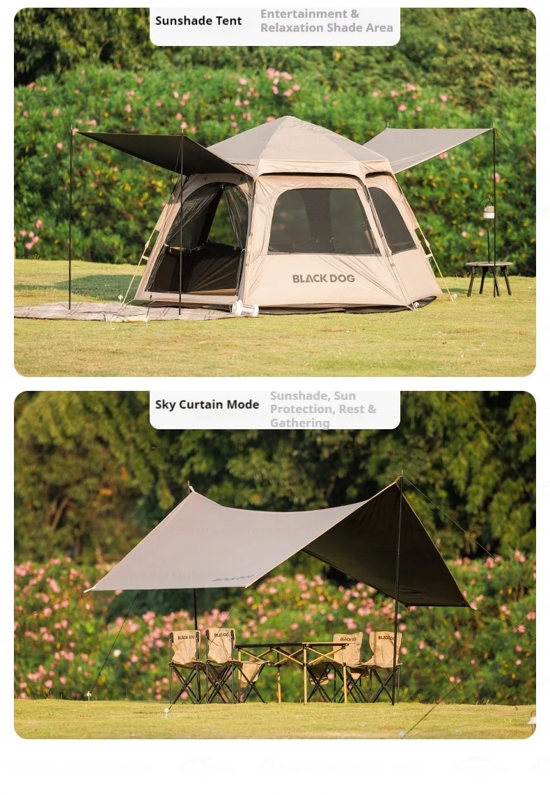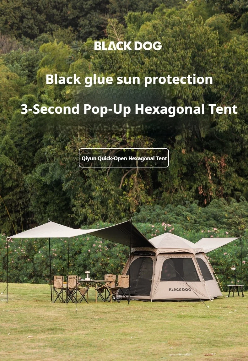 Tienda Hexagonal Naturehike BLACKDOG Qiyun con Vista Panorámica 360°, Protección Solar UV, Impermeable y Revestimiento Negro