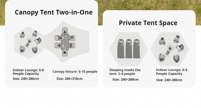 240x280x160cm(Tent),260x310x180cm(Awning)