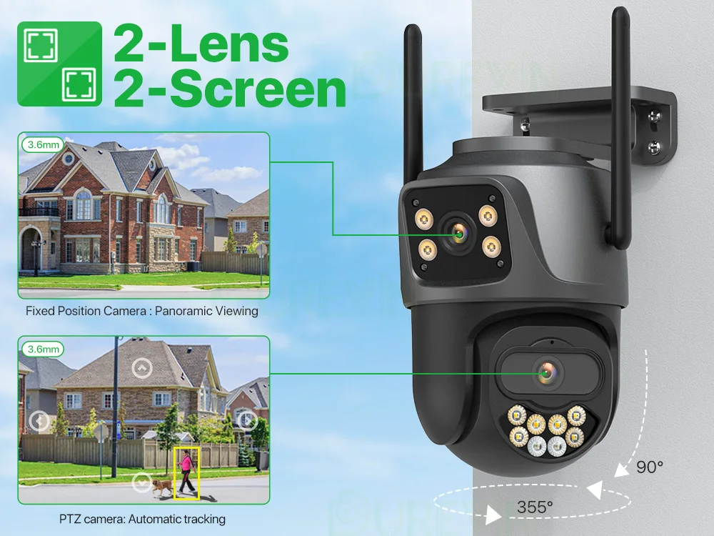 ●Tres lentes Sensor dual Tres pantallas, visualización gran angular + visualización de larga distancia para lograr un monitoreo claro desde lejos y cerca;