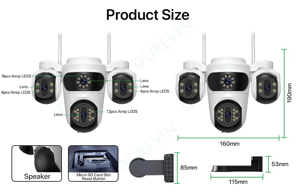Grabación máxima de tarjeta SD de 256G y grabación de almacenamiento en la nube (necesita una tarifa adicional), la seguridad de los datos es más estable.