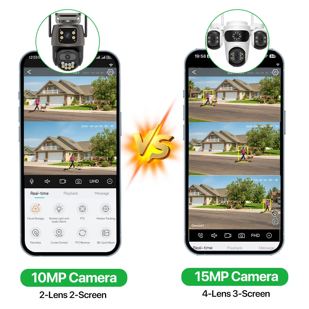 Cámara de vigilancia WIFI para exteriores de 15MP, cámara de tres lentes PTZ AI, cámara CCTV inalámbrica de seguimiento humano
