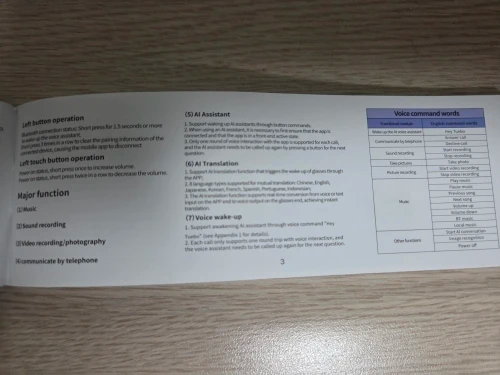 Características principales: Asistente de voz AI/toma de fotografías/grabación de video/grabación de audio/control de música/llamadas/arrojos de alerta/luces indicadoras/traduación/reconocimiento de objetos/pantalla táctil/reproducción de música (control de música, música local), etc.