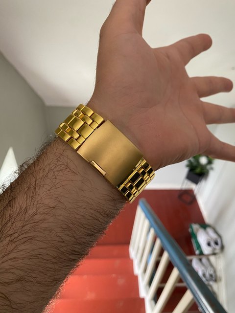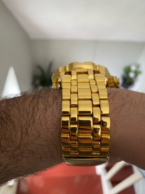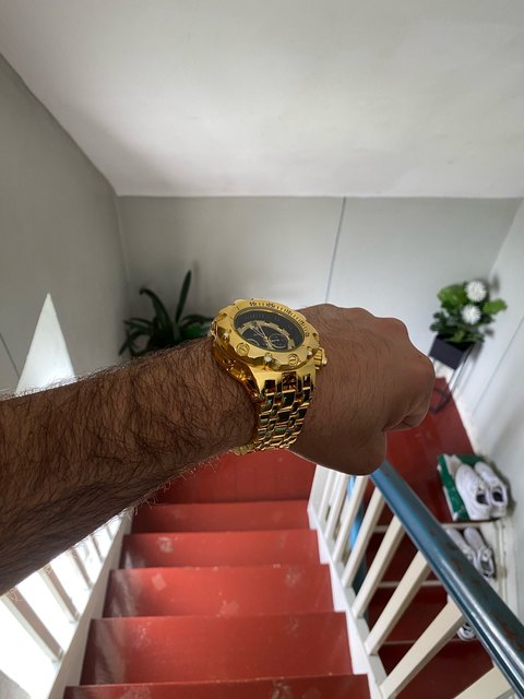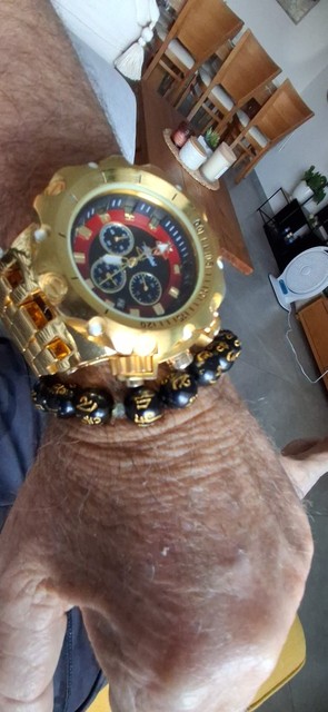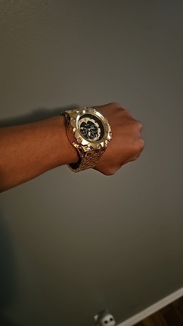 reloj robusto queda muy bien es llamativo para muñecas grandes perfecto pesa por lo menos 300 gramos