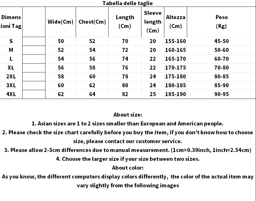 Tamaño: S M L XL XXL 3XL 4XL