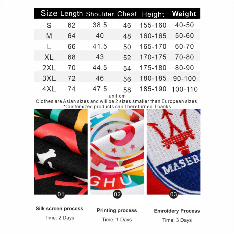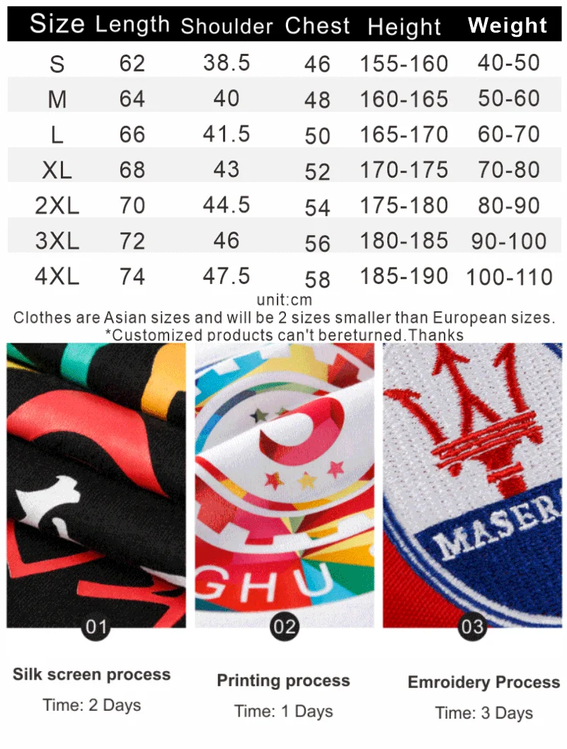 2. Due to the color and size restrictions of the embroidered logo, the price cannot be unified. You can send us the logo to ask if the logo can be embroidered, and tell us how many shirts you need, we will calculate the price for you.